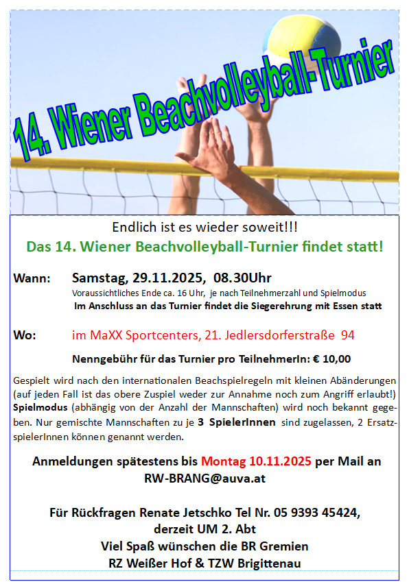 1. Platz beim 14. AUVA/AUVB-ZBR Beachvolleyballturnier für die Sandsäcke vom Weißen Hof