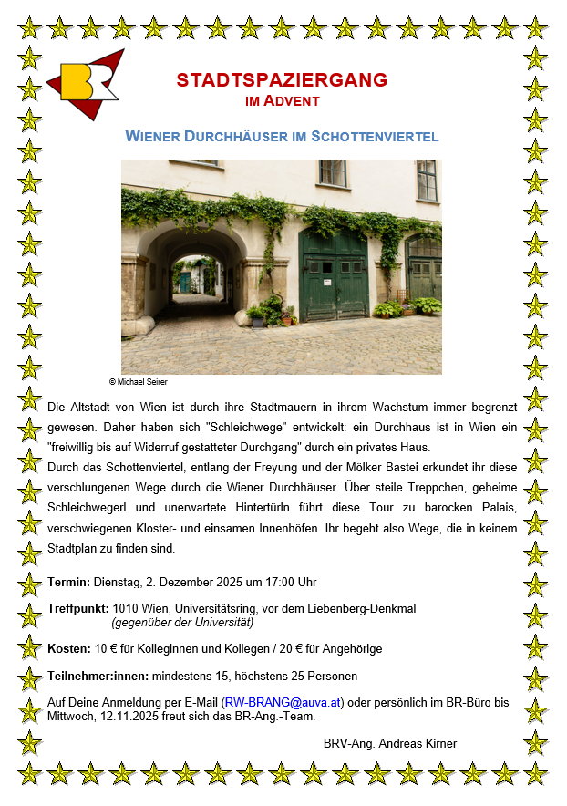 STADTSPAZIERGANG IM ADVENT Dieser Beitrag wurde am 23. Oktober 2025 von Andreas Kirner in Allgemeines veröffentlicht.