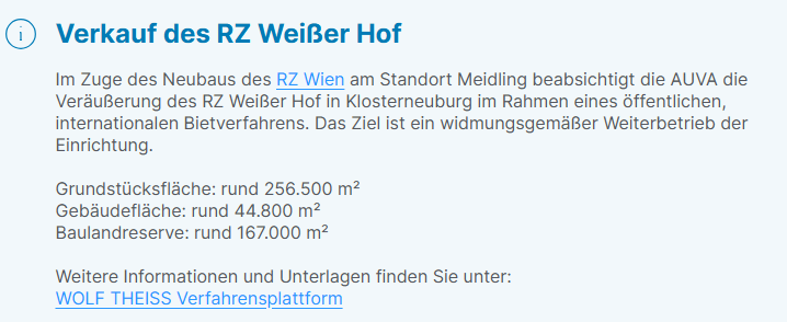 Der Verkauf des Weißen Hofs, den die AUVA bereits vor geraumer Zeit publik gemacht hat, wird konkreter: Ein Inserat wurde auf der RW-Homepage geschaltet