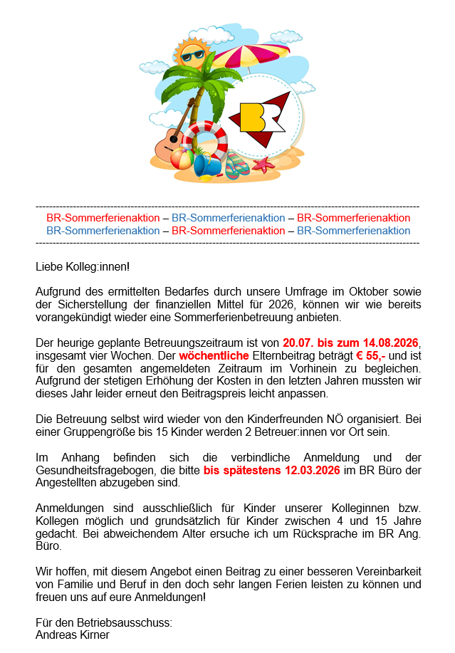 Sommerferienbetreuung 2026 Dieser Beitrag wurde am 24. Februar 2026 von Ulrike Binder in Allgemeines veröffentlicht.